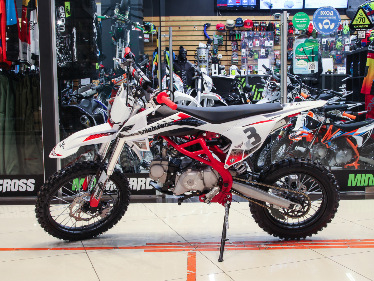 Питбайк Zuumav FX K3 125 cc — отличный выбор для покорения внедорожья. Его четырехтактный двигатель объемом 125 куб. см отличается отличной тягой с самых низов и низким расходом топлива. Крутящий момент двигателя передается на механическую коробку передач, что облегчает управление мотоциклом. Дополнительно питбайк комплектуется подвеской ZUUMAV, идеально подходящей для эксплуатации в агрессивных условиях. Стальная рама модели делает ее идеальной для тренировок по мотокроссу. Пластик кроссового мотоцикла имеет оригинальный дизайн и потрясающий яркий цвет графики. Приобрести Питбайк Zuumav FX K3 125 cc 17/14 можно в нашем салоне, либо мы осуществляем бесплатную доставку в регионы. Мы также предлагаем программы рассрочки и кредита, чтобы сделать вашу покупку еще более доступной.